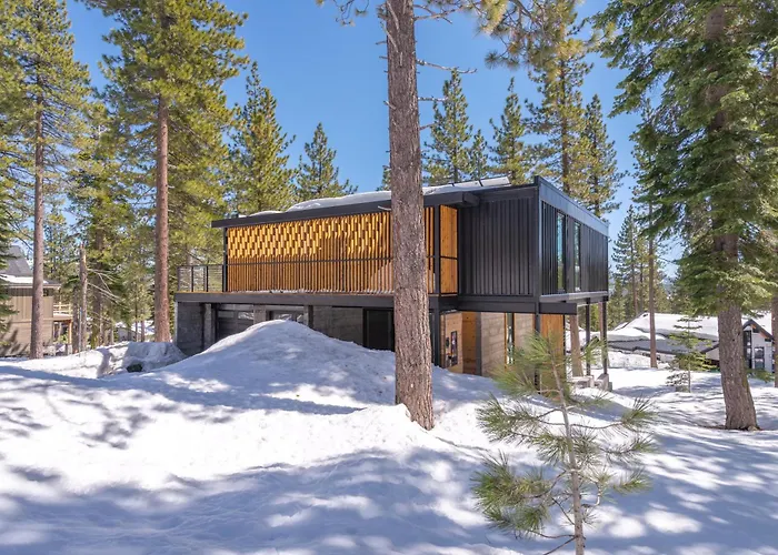 Offering guests to unwind in a Jacuzzi, Modern Eco Retreat With Hot Tub And Views Villa Truckee is located a 25-minute walk from the Tahoe Donner. Guests can enjoy hiking and cycling at the 3-bedroom villa, located 2.7 km from the run Donner Memorial State Park.